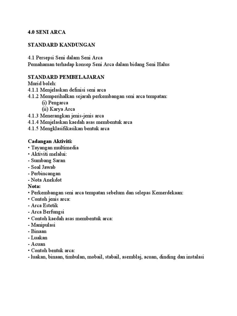 . KSSM PENDIDIKAN SENI VISUAL TINGKATAN 4 DAN 5. Seni arca merupakan hasil produk seni dalam bentuk 3 dimensi 3D. Nota Seni ASAS SENI REKA A.